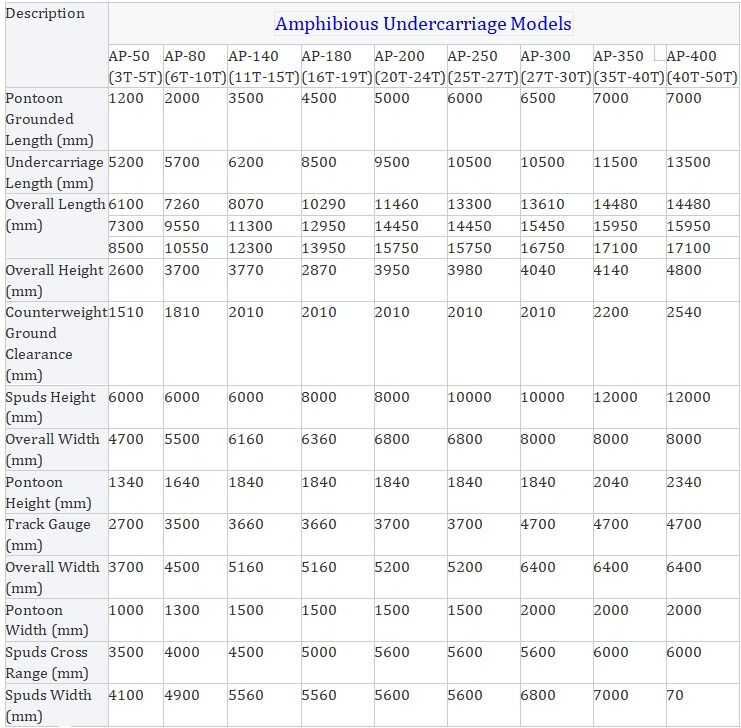 Amfibijna koparka jest specjalnie zaprojektowana do pracy w bagnistych obszarach, mokradłach, płytkich wodach i wszystkich miękkich terenach z możliwością pływania na wodzie.Dobrze zaprojektowany ponton amfibiczny/podwozie zostało szeroko i skutecznie stosowane do usuwania błotnistej gliny, oczyszczanie osadnych okopów, usuwanie drewna oraz wszelkie prace w bagnach i w wodzie płytkiej, w których tradycyjne standardowe koparki mają ograniczenia.